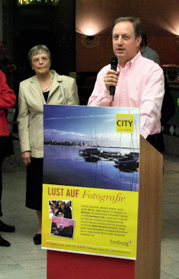 In spite of a full day of official activities Mayor Dave Cieslewicz came to open Brent Nicastro's photo exhibition at the Schwarzwald City on the evening of June 11
