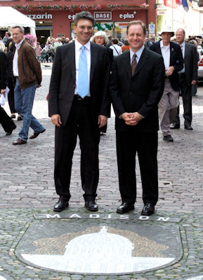 On the occasion of the 20th anniversary of Freiburg's partnership with the city of Madison, Wisconsin, an official delegation headed by Mayor Dave Cieslewicz visited Freiburg from Monday June 9 to Sunday June 15. During the same period the Freiburg-Madison-Gesellschaft (FMG) received old friends as private guests who came to Freiburg as members of our Sister City Committee in Madison. For their stay the FMG organized a program in which both parties (official and private) participated time permitting.
