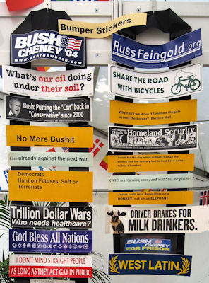 Left: Collection of bumper stickers. Not yet so popular in Germany |