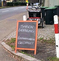 Yes, Toni opened his Kastaniengarten at the Greiffenegg and yesterday already people had their beers in the afternoon sun.