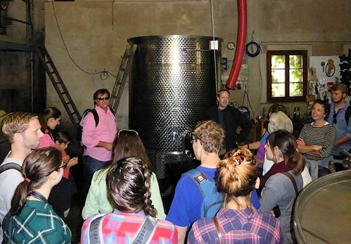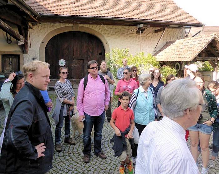 At the Bioweingut Köpfer. Father and son greet the visitors (©US)