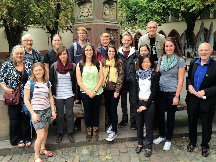As in previous years the Freiburg-Madison-Gesellschaft offered two events for the newly arrived students of the Academic Year in Freiburg 2014/2015. On September 10, at 10 a.m. a guided tour of Freiburg in English started at the Bertold Schwarz Fountain: