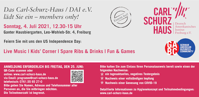 Lassen Sie sich durch das "For Members Only!" nicht abschrecken. Seit Jahren zählen Freiburg-Madison-Gesellschaft e.V., Academic Year in Freiburg, Centre Culturel Français, Goethe-Institut Freiburg, Konfuzius-Institut an der Universität Freiburg und Zwetajewa Zentrum Freiburg als Mitveranstalter. Alle Mitglieder der FMG sind eingeladen.