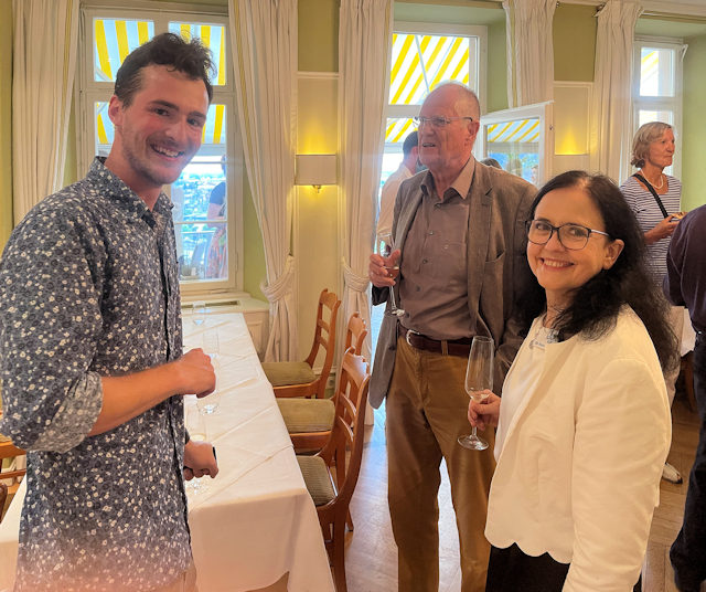 Die stellvertretende Direktorin des Carl-Schurz-Hauses im Gespräch mit einem jungen und älteren Semester.