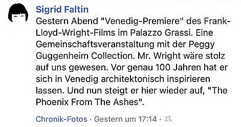 Breaking News: Dr. Sigrid Faltin am 30. September 2021 in Venedig: