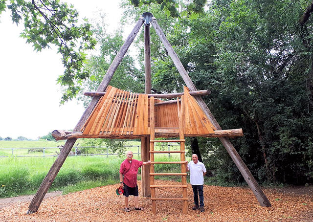 Charles and Dick visiting (©Region im Blick) Zum 10. Internationalen Partnerschaftstreffen in Freiburg fuhren Charles J. James, Präsident des Sister City Committees, und Schatzmeister Richard Kotenbeutel zum Mundenhof und bewunderten die vom Spendengeld errichtete Aussichtsplattform beim Bisongehege, die einen tollen Ausblick auf die Freiburger Prärie bietet.