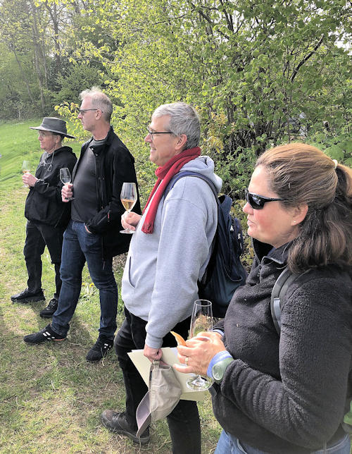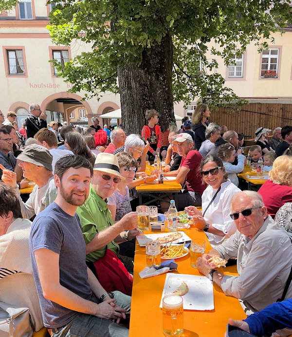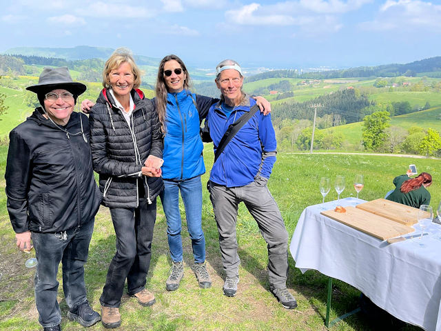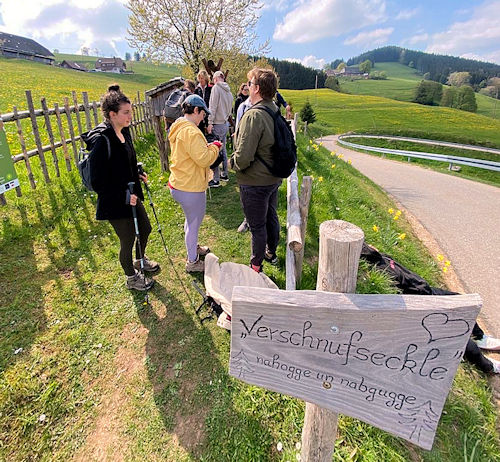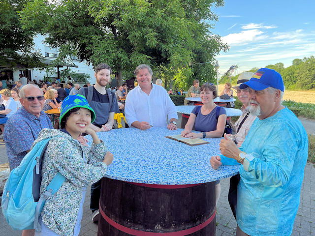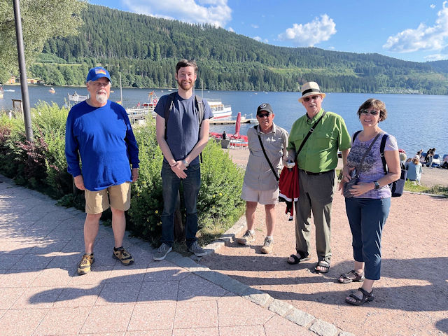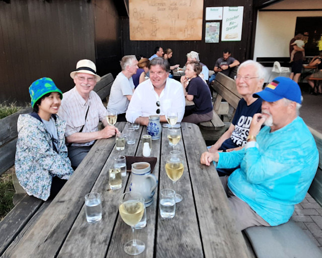 In Erwartung des Jubilars (©RSW) Our group was -- actually, since practically everyone else was in on the secret, I should say: I was mightily surprised to find FMG Chair Toni Schlegel in a random spot along our hiking route with a lovely reception! Karin Jors read a message of thanks and appreciation from UW-Madison reminding me that more than 800 students have joined us in Freiburg since I started with AYF in 2002.