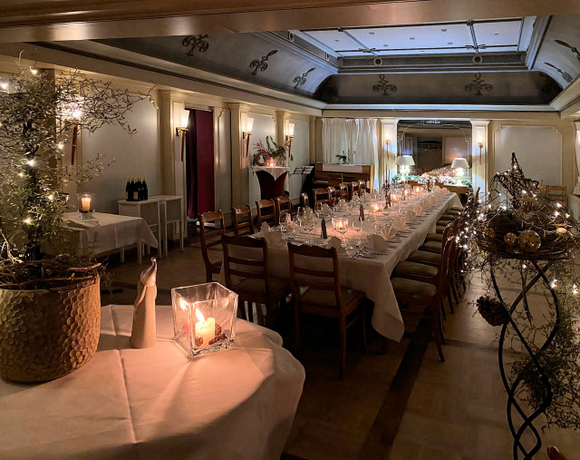 Weihnachtlich geschmückter Saal und festlich gedeckteTafel (©GvS)