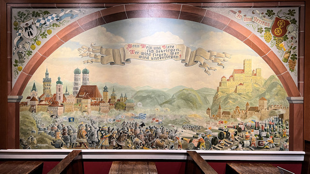 Bier-und Weinkrieg. N.B.: Die glücklichen Franken genießen beides.