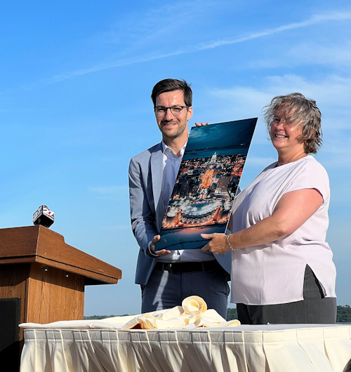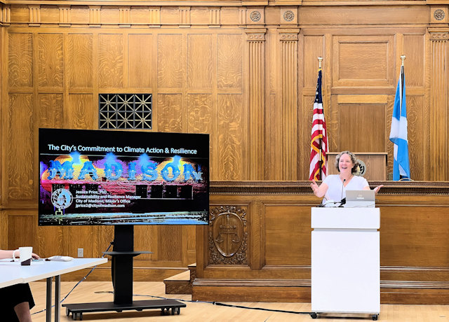 Madisons Bürgemeisterin Satya Rhodes-Conwey heißt die Freiburger Gäste herzlich willkommen