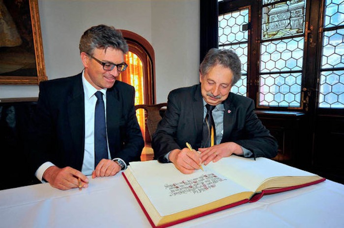 Visiting the booth: Mayor Soglin, Freiburg's Deputy Mayor Ulrich