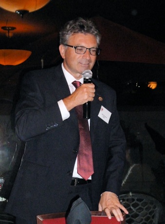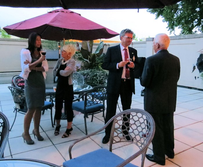 At the terrace of the Madison Club: Mayor Salomon in discussion with the