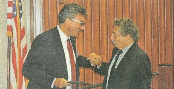 Toni Schlegel hands over to Mayor Soglin a gift of the FMG (©CJ).
